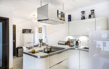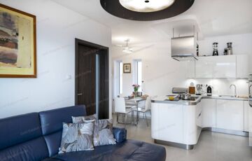 - kiváló minőségű bútorok a lakásban és a teraszon, prémium minőségű, egyedi Nolte konyha, minőségi gépek és háztartási eszközök