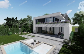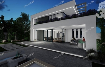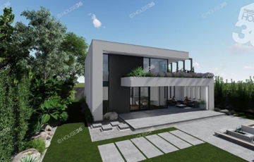 Az összközműves, betonos utcában található 910 m2-es telekre egy 126 m2-es prémium minőségű 2 szintes házat terveztek.
