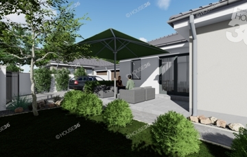 Az összközműves, betonos utcában található 520 m2-es telekre egy 91 m2-es prémium minőségű 1 szintes házat terveztek.