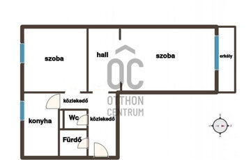 A lakásnak kiváló elosztása van, két külön nyíló világos szobát, valamint egy tágas hallt foglal magában, mely akár étkezőnek is alkalmas lehet.