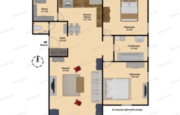 (Pontos méretei: 6,9 m X 4,2 m: 29m2, belmagasság: 2,1 m)