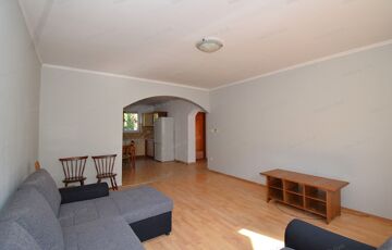 Elosztása: amerikai konyhás nappali étkezővel, kamra, két tágas szoba, fürdőszoba káddal, külön toalett. Fűtése egyedi kombi gázkazán radiátoros hőleadással. Áramerősség 25A. Ablakai műanyag kétrétegű hő- és hangszigetelt, redőnnyel, szúnyoghálóval szerelt, bejárati ajtó és beltéri ajtók fenyőfából készültek. Előszobában beépített szekrény áll rendelkezésre.