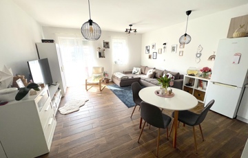 Mezőtúron, a Pétery Lakóparkban, 1. emeleti, 51 m2-es amerikaikonyhás-nappali + hálós külön wc-fürdős, nagy teraszos, modern lakás eladó.