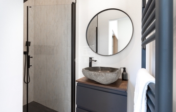 A felújítás során magas színvonalú anyagok kerültek felhasználásra, amely modern és elegáns megjelenést biztosít.