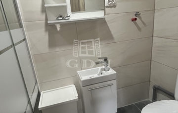 A tér maximálisan kihasznált: egy kis konyha étkezőasztallal, ahol kényelmesen elfogyasztható a reggeli kávé, valamint egy kanapé, amely estére ággyá alakítható, így nappal tágasabb, este pedig kényelmes pihenőtérré válik a lakás. A fürdőszobában modern walk-in zuhany került kialakításra.