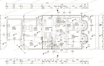 - Földszinti helyiségek: amerikai konyhás nappali 50,46 m2, szoba 24,2 m2, fürdőszoba 15,31 m2, gardrób 4,3 m2, mosókonyha 2,97 m2, külön WC 2,75 m2, kamra 1,9 m2, előtér 11,48 m2, lépcsőház 7,17 m2, terasz 19,18 m2, garázs 23,79 m2.