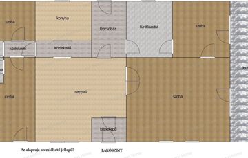 - Lakószinti helyiségek: nappali étkezővel, konyha, kettő szoba, fürdőszoba, közlekedők, lépcsőház, fedett terasz, és egy külön bejáratú apartman.