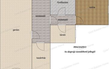 - Pinceszint helyiségei: szoba, fürdőszoba, közlekedő, tároló, kazánház, garázs.