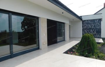 Az új építésű családi ház 1972 m2-es területen, csendes környezetben helyezkedik el. Az egyszintes ház, négy hálószobával, nagy amerikai konyhás nappalival, kettő fürdőszobával, külön WC-vel, terasszal, dupla garázzsal, kényelmes életteret biztosít Ön és családja számára.