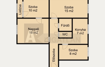 - nappali + 3 külön bejáratú szoba + konyha + fürdőszoba + WC+ kihelyezett előtér + lodzsa
