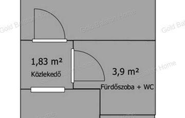 - előszoba, konyha, étkező, közlekedő, hálószoba, fürdőszoba zuhanyzóval + WC