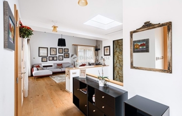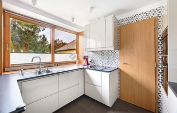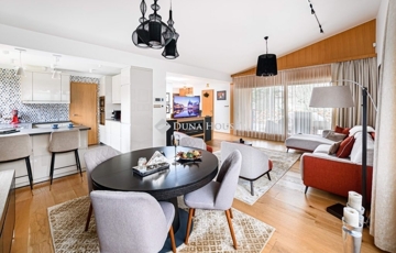 tágas, 3,15 m belmagasságú nappaliétkező, közvetlen teraszkapcsolattal; modern konyha kamrával; hálószoba; fürdőszoba; külön WC; gardrób/dolgozó és elegáns belső lépcső .
