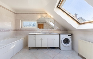 A ház 2000-ben épült, teljes közművel ellátott. A földszinten nappali, konyha, hálószoba, valamint egy kisebb, zuhanyzós fürdőszoba kapott helyet, WC-vel. A tetőtérben további két szoba és egy tágas, káddal felszerelt fürdőszoba található. Az emelethez erkély, a földszinthez pedig terasz kapcsolódik.