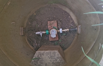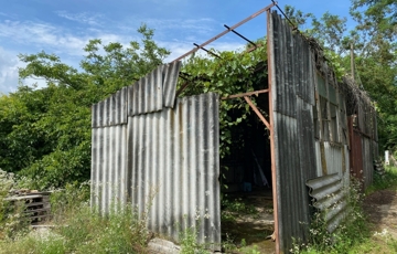 Területen található egy betonalappal rendelkező épület, pince, fúrt kút.