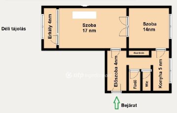 A szobák egymásból nyílnak, amely praktikus elrendezést biztosít.