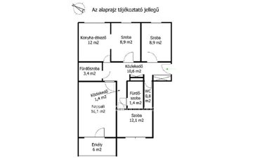 A lakás nappaliból és 3 külön nyíló hálószobából áll. A szobák mérete: egy 16,5 m2-es, egy 12,5 m2-es, valamint 2 db 8,5 m2-es helyiség. A belmagasság 2,6 m, a nappali délnyugati tájolású.