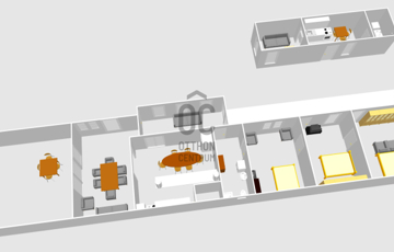 A szobák egy kivételével saját bejárattal is rendelkeznek a teraszról.
