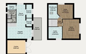 nappali + 3 hálószoba