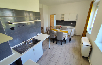 Belépve egy légtérben találjuk a tágas konyhát és az előszobát. Innen nyílik a 2 szoba és az épített zuhanyzós, kényelmesen használható fürdőszoba is.