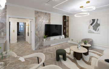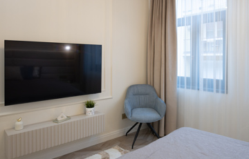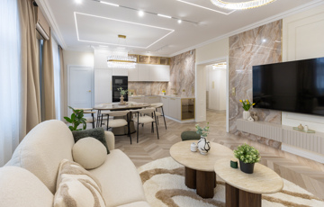 A lakás minden részlete a minőséget és a kényelmet szolgálja: prémium burkolatok, modern gépesítés, elegáns bútorok és harmonikus színvilág teszik igazán különlegessé. A tágas nappali-konyha-étkező ideális közösségi tér, a két hálószoba és a külön gardrób pedig maximális kényelmet biztosít hosszú távon is.