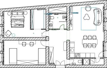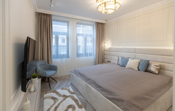 • Praktikus elrendezés: 2 külön nyíló szoba + gardrób + nappali