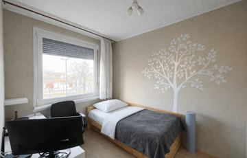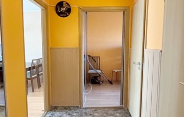 A 3 szoba külön nyílik, a nappali kellemesen világos, a reggeli-keleti napfény szépen bevilágítja a teret. A 2 hálószobában pedig beépített szekrények találhatók. Az nappali mellett található szoba helytakarékosság szempontjából tolóajtóval rendelkezik.