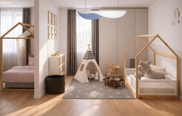 A 3A típusház alaprajza hatékonyan választja el a közösségi és a privát funkciókat. A házban három különálló szoba kapott helyet, amelyek alkalmasak hálószobának, gyerekszobának vagy akár dolgozószobának is. A fürdőszoba és a külön WC kényelmes használatot biztosít a mindennapokban.