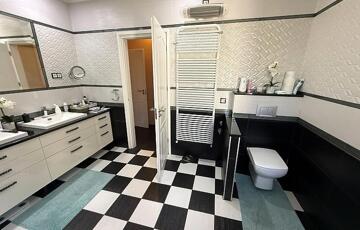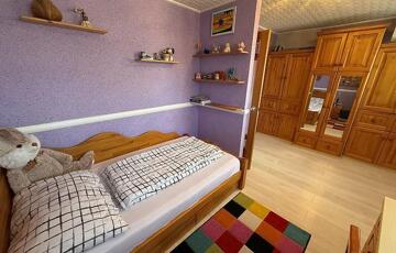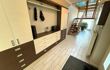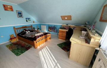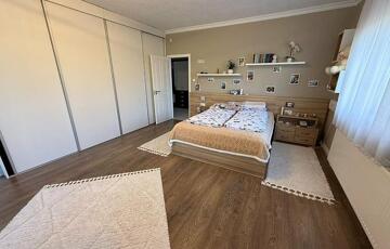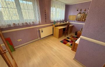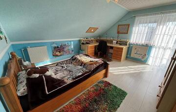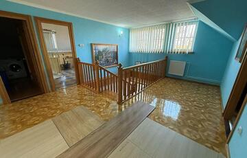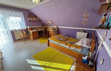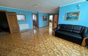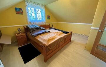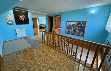 Emelet: 5 szoba, kádas fürdőszoba, + wc, gardrób, közlekedő, mosókonyha, erkély.