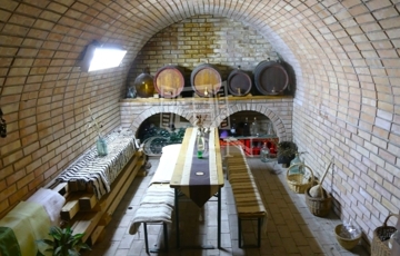 - szép állapotú klinker tégla burkolattal rendelkező borospince,