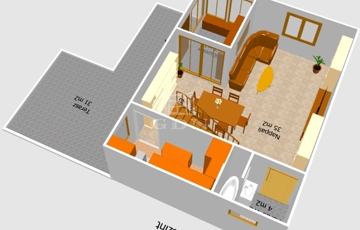 - fürdő-wc (kád+ tusoló - meleg víz ellátás 80L-es bojler)