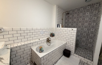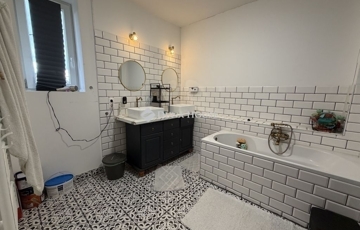 Modern fürdő káddal és zuhannyal, külön mellékhelyiséggel