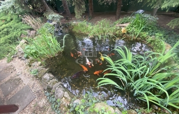 -kerti tárolókkal, sütőhellyel, kerti tóval, medencével rendelkezik