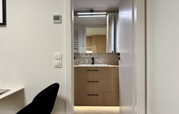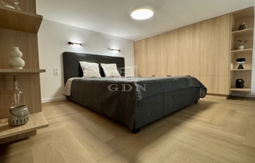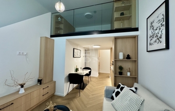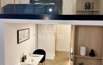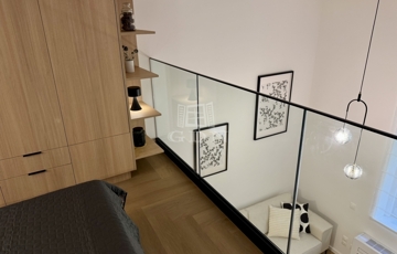 A lakás magas belmagassága lehetővé tette egy 11,68 m²-es állógaléria kialakítását, amely hálószobaként és extra tárolóként is funkcionál, így a tér jóval tágasabb és kényelmesebb a megszokottnál.