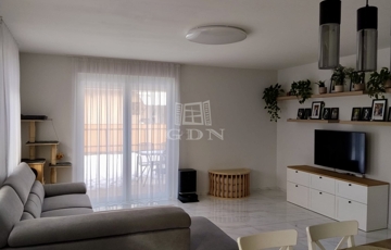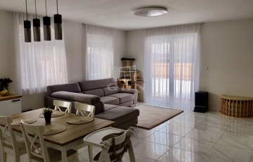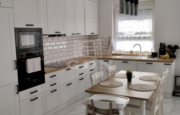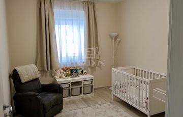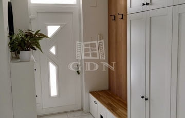A ház nettó 95,49 négyzetméteres lakóterülettel rendelkezik, amelyet átgondolt, praktikus elrendezés jellemez. A tágas, amerikai konyhás nappali a lakás központi tere, amely természetes fényben gazdag, jól berendezhető, és közvetlen kapcsolatban áll a kerttel. A három külön nyíló szoba kényelmes életteret biztosít akár családok számára is. A konyha teljesen gépesített, a beépített bútorokkal és eszközökkel együtt a vételár részét képezi, ahogyan a fürdőszoba berendezése és a zuhanykabin is. A padlástér további praktikus tárolási lehetőséget kínál.