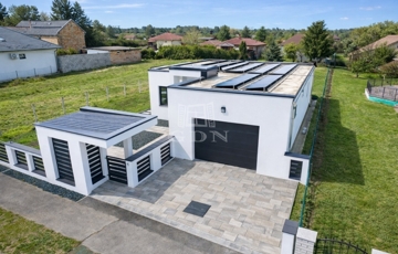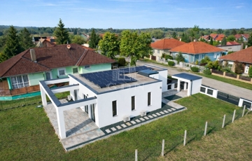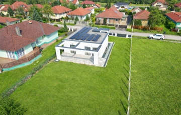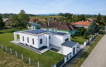 A modern, masszív szerkezetű otthon letisztult építészeti megoldásokkal, átgondolt elrendezéssel és kiemelkedő energiahatékonysággal (AA++ energetikai besorolás) rendelkezik.