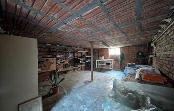 A pince nagy és száraz. A háznak van garázsa is és 15m fedett autóbeálló része is.