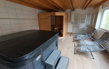 A két ház között egy wellness részleg gondoskodik a feltöltődésről: szauna és jakuzzi várja az ide érkezőket.