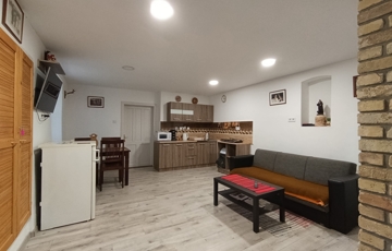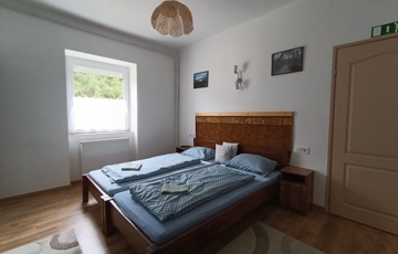 Meghitt hangulatú közösségi tér, két különálló, saját fürdőszobás szoba – tökéletes pihenésre, elvonulásra.