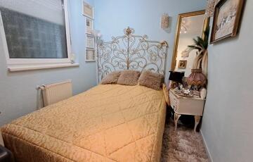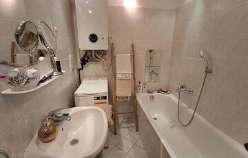 A lakás át lett alakítva, az elosztása kiváló. Jelenleg egy tágas amerikai konyhás nappal, hálószoba, előtér, közeledő és mellékhelyiség áll rendelkezésre. Igényes burkolatokkal lett ellátva minden helyiség. A gépesített konyhabútor (hűtőszekrény, főzőlap, sütő, mosogatógép), az előtérben található gardróbszerkény és a nappaliban kialakított beépített szekrény a vételár részét képezi. A Bosch kondenzációs kazán, ami idei évben lett cserélve, biztosítja a fűtést és a meleg vizet.