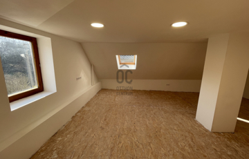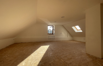 Az emelet egyelőre egyterű, de itt kialakítható két hálószoba is.