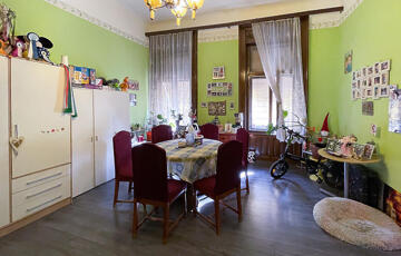 A Palotanegyed egyik kis forgalmú utcájában eladó egy világos, magas emeleti saroklakás liftes, rendezett társasházban.