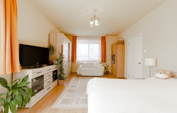Az 1988-ban épült ingatlant egy saját lépcsőházon keresztül tudjuk megközelíteni, ahol helyet kapott egy tágas, délnyugati fekvésű nappali, egy keleti fekvésű hálószoba, konyha, fürdőszoba illetve külön wc. A közlekedőből érjük el a 7 nm-es erkélyt.