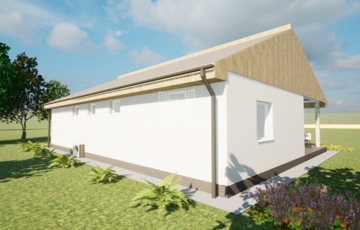 Egy lenyűgöző, 1874 m²-es telken épül meg ez a modern, letisztult stílusú családi ház, ahol minden adott a nyugodt, minőségi élethez.