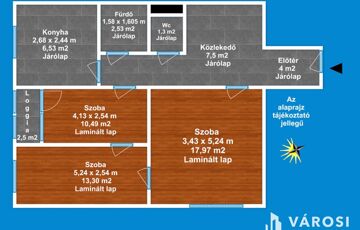 A lakás 1 db nappalival, 2 db hálószobával, 1 db fürdőszobával, külön Wc-vel, közlekedővel, előtéttel, loggiával rendelkezik. Az ingatlan elhelyezkedésre, kialakítása miatt rendkívül sokrétű a felhasználása - akár lakás, vagy befektetési célra -, amely maximálisan kiemeli ezt az ingatlant az átlagos lakások sorából és egyedülálló választássá teszi azt.