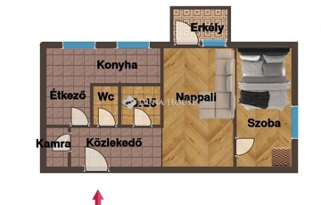 Kialakítása: tágas nappali, szoba, közlekedő, kamra, külön wc, fürdő, étkező, konyha, erkély.