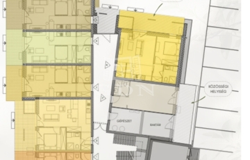 A 3 szintes lakóépület földszintjén, illetve első és második emeletén további lakások helyezkednek el, melyek 29, 30, 39, 40 és 46 m2 alapterületűek.