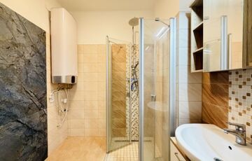 - a fürdőben kellemes hangulatú hidegburkolat, a többi helyiségben laminált parketta