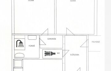 közlekedő + GARDRÓB beépítési lehetőség (3,6m2), fürdőszoba zuhanyzóval (3,92m2), 2 szoba (16,4m2, 15m2)