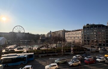 -Deák térre panorámás hatalmas erkély.