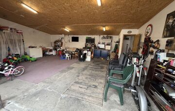 A telken található továbbá egy 40 m²-es téglából épült dupla garázs, amely kényelmes parkolást és tárolási lehetőséget kínál, és helyet kapott benne egy wc is.